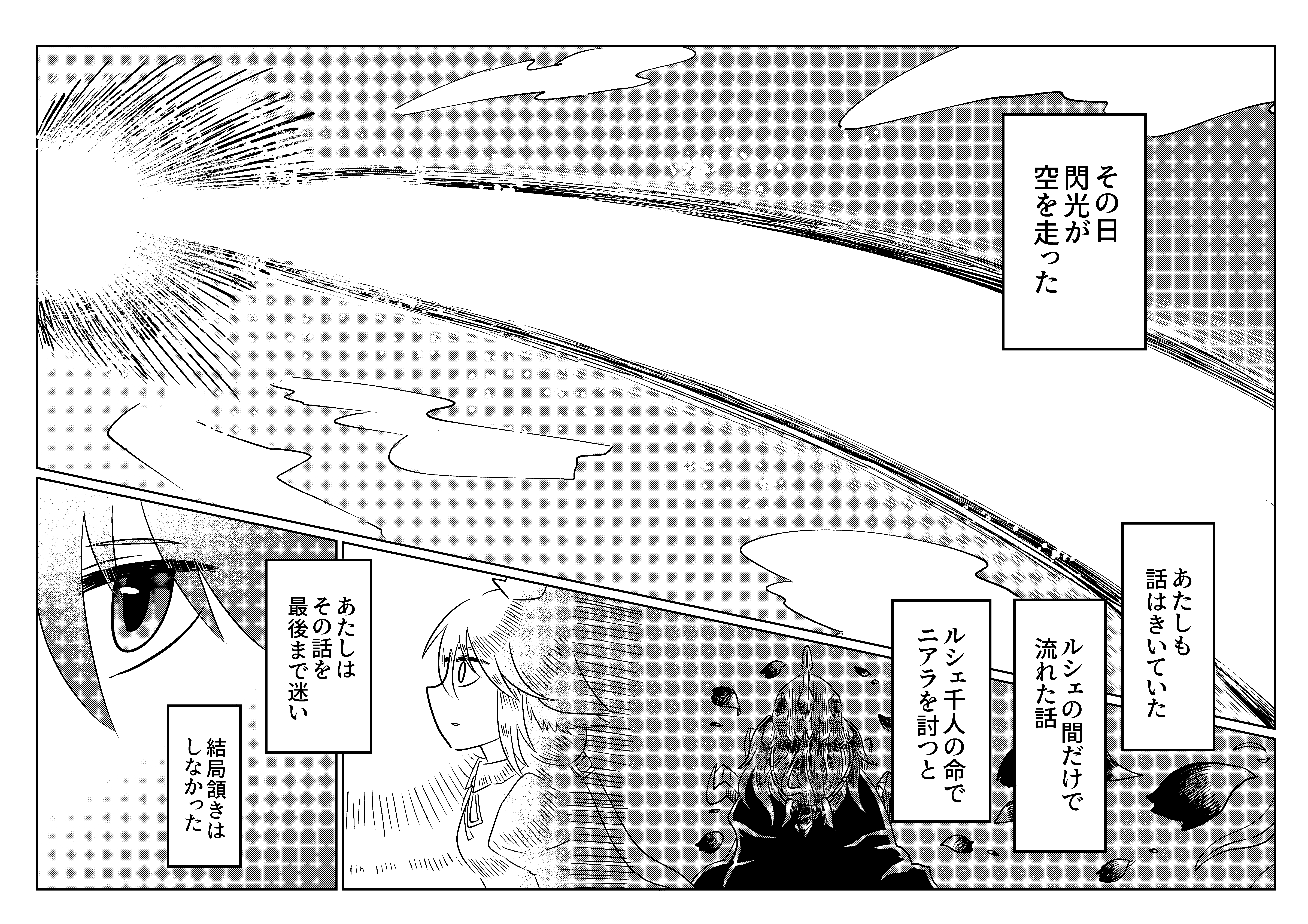 最後のセリフを言って欲しかった話。サクリファイスが手に入るクエストの名前、そしてアンソロジーのタイトルでもあるこの言葉でifの話を締めたかったのでした。