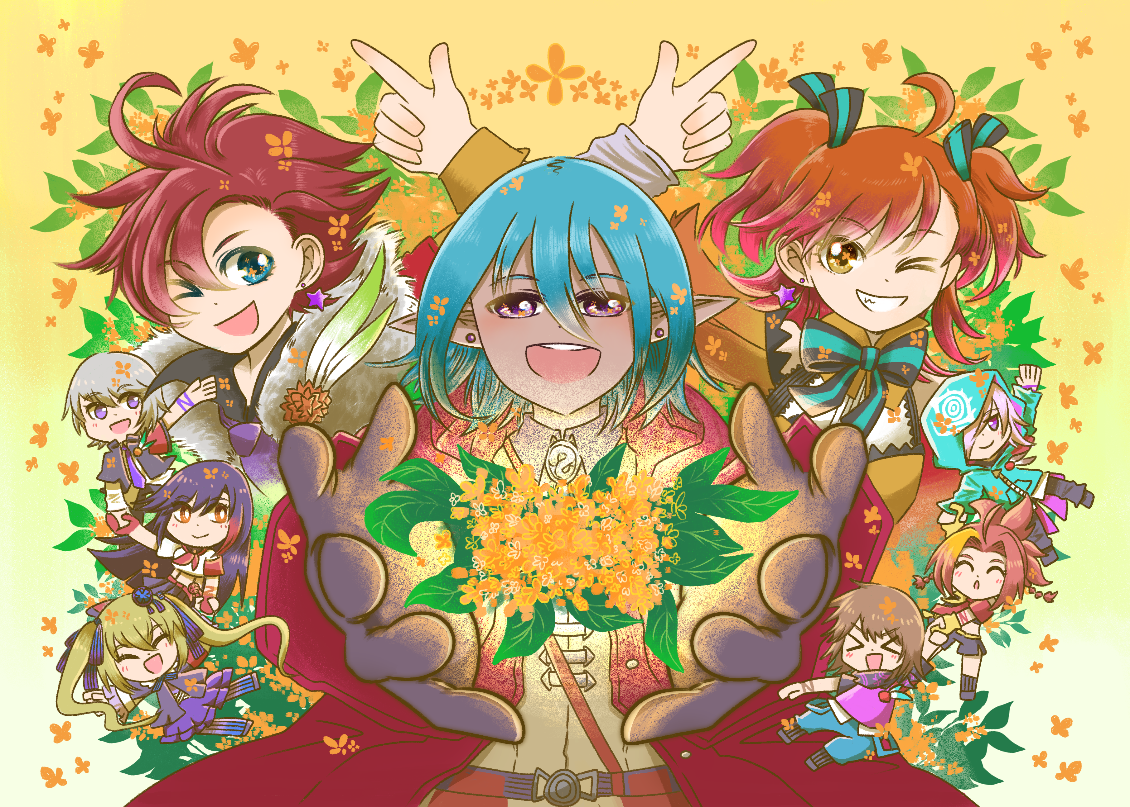 そして壁掛けの9月を担当しました!アイドル13班と金木犀です!前にかいたオリジナルなアイドル衣装をもう一回描きたくて、そんな感じの衣装してます。